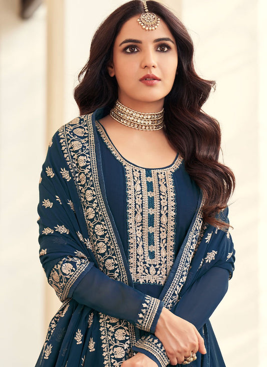 Trendy Suit Georgette Blue Embroidered Salwar