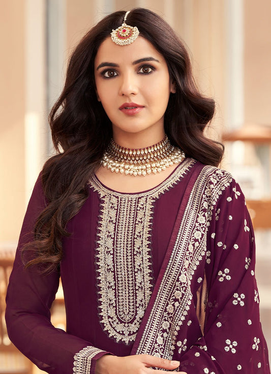 Salwar Suit Georgette Magenta Embroidered Salwar