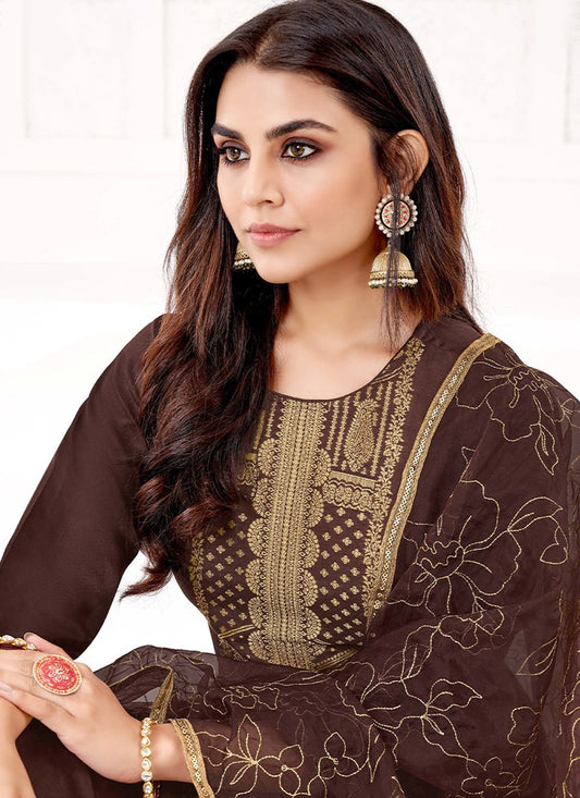 Salwar Suit Chinon Maroon Embroidered Salwar