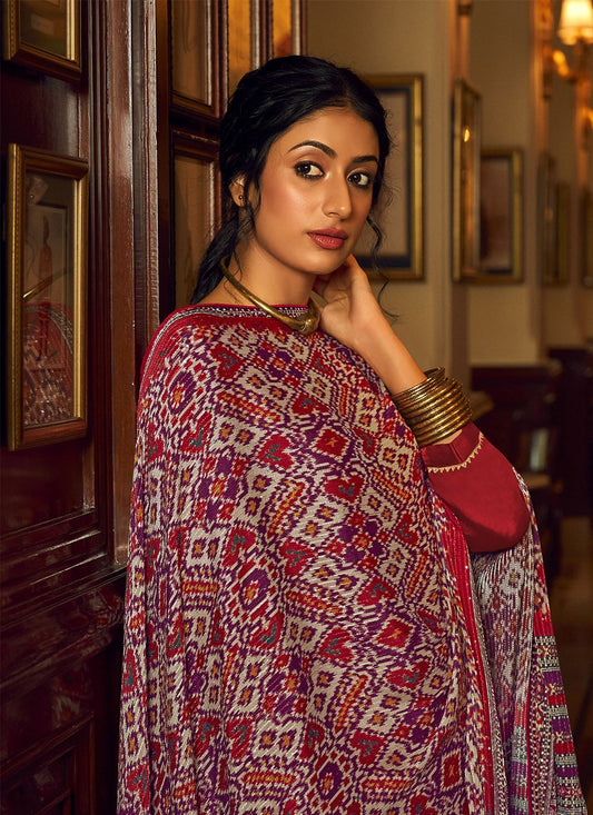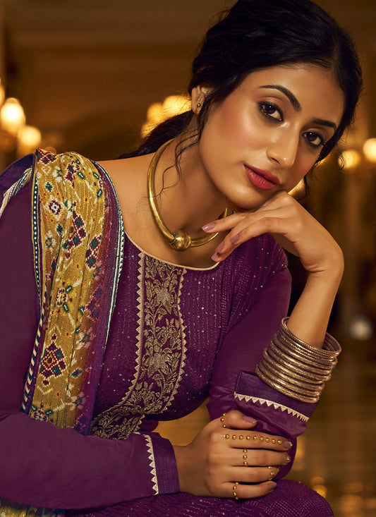 Pakistani Salwar Suit Chinon Purple Embroidered