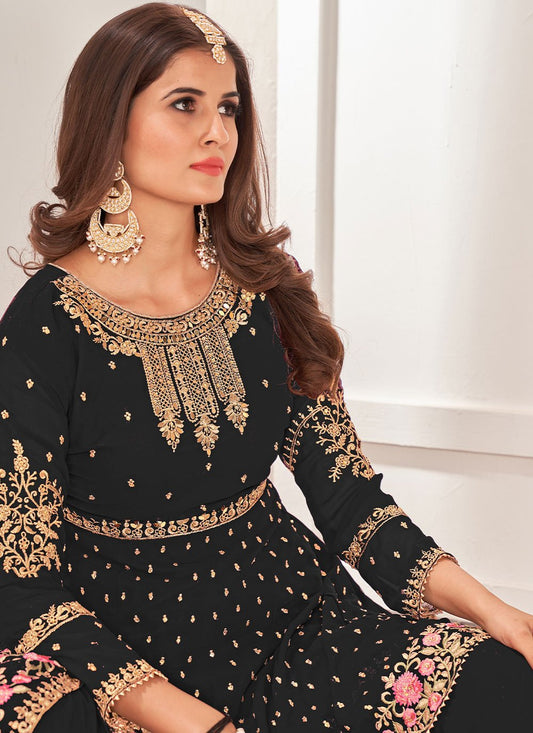 Palazzo Salwar Suit Georgette Maroon Embroidered