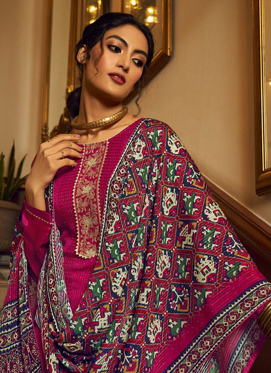 Salwar Suit Chinon Magenta Embroidered Salwar
