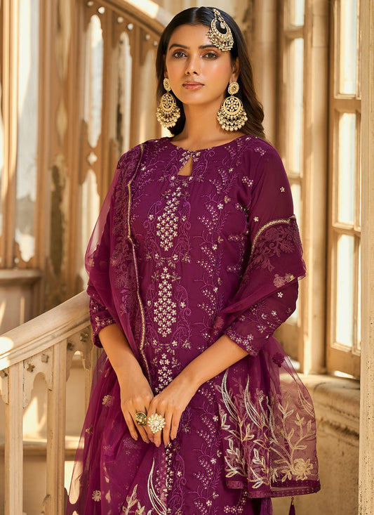 Palazzo Salwar Suit Georgette Blue Embroidered