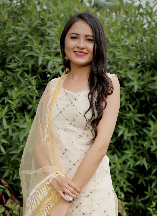 Salwar Suit Cotton Yellow Embroidered Salwar