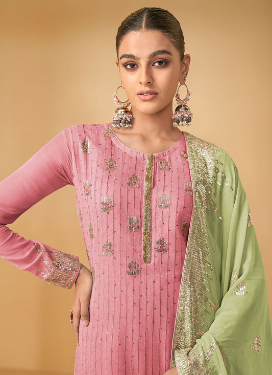 Salwar Suit Georgette Pink Embroidered Salwar