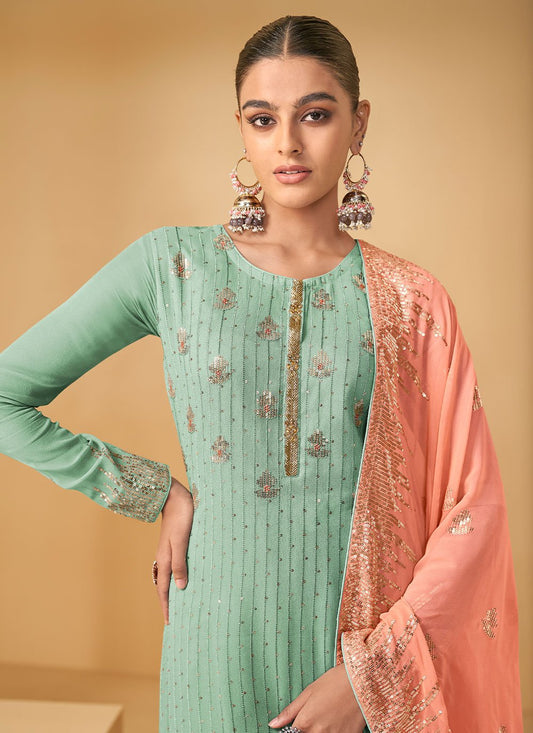 Salwar Suit Georgette Firozi Embroidered Salwar