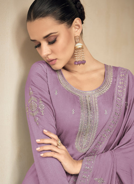 Salwar Suit Silk Lavender Embroidered Salwar