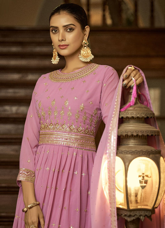Salwar Suit Georgette Fuchsia Embroidered Salwar