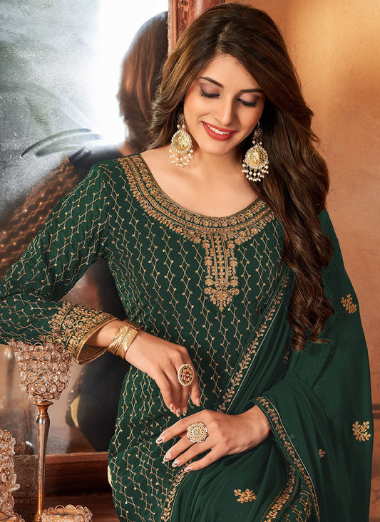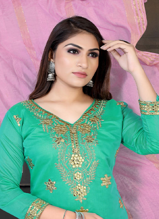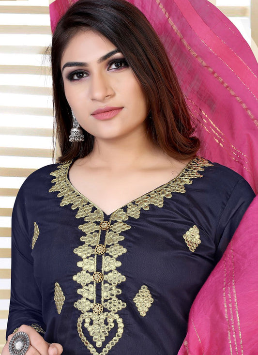 Salwar Suit Chanderi Blue Embroidered Salwar