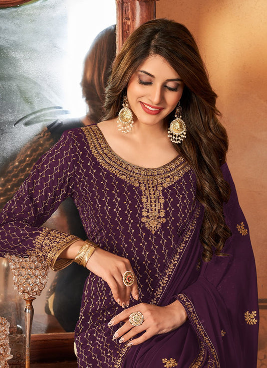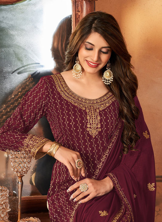 Salwar Suit Velvet Maroon Embroidered Salwar