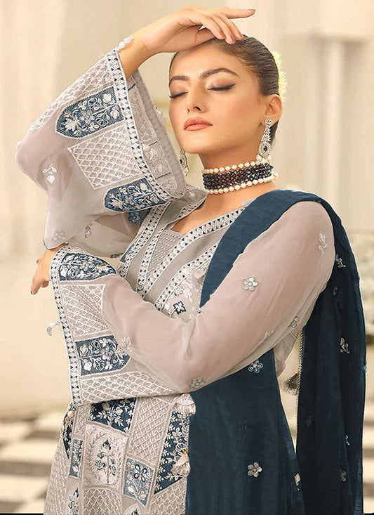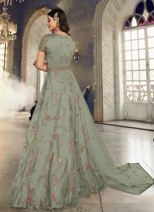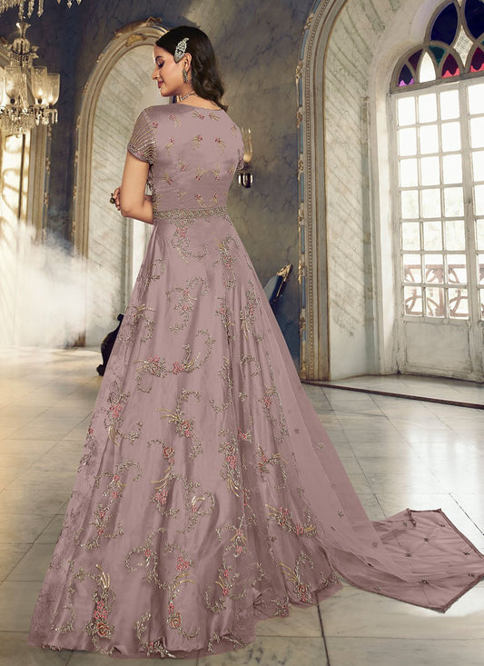 Anarkali Suit Georgette Purple Embroidered Salwar