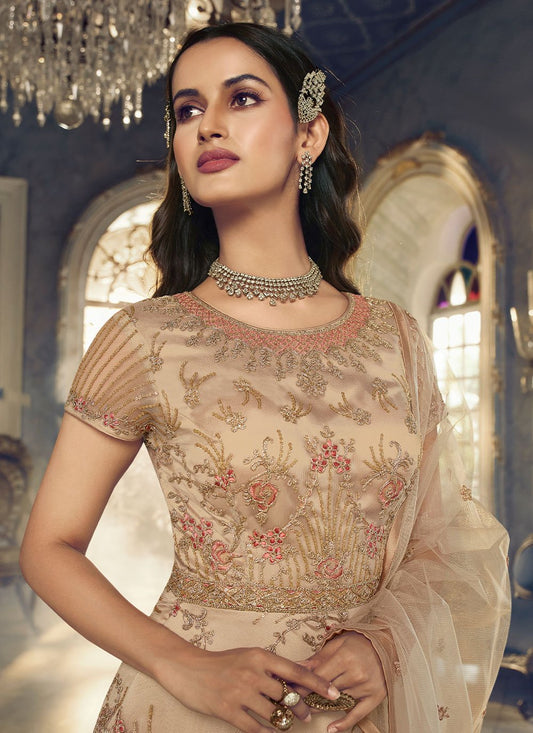 Salwar Suit Velvet Morpeach Embroidered Salwar