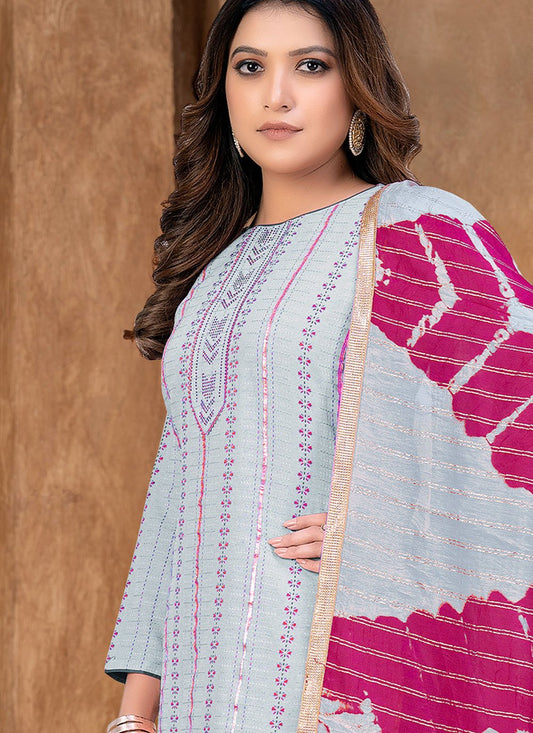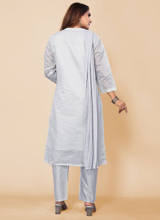Salwar Suit Chanderi Silk Grey Embroidered