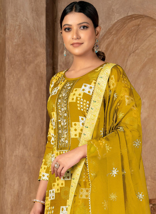 Salwar Suit Banarasi Jacquard Yellow Weaving
