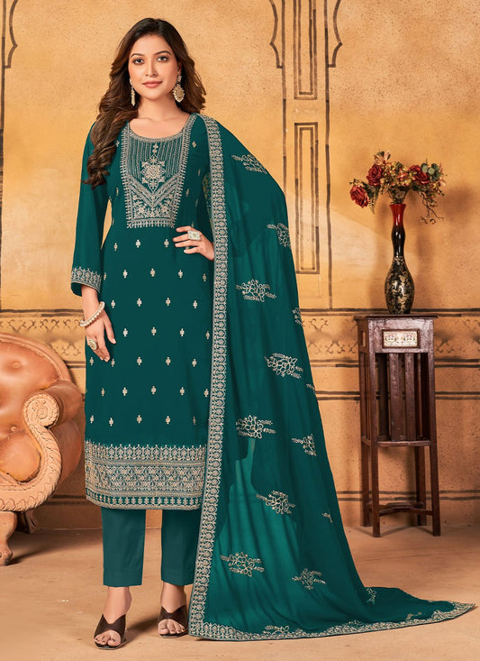 Pant Style Suit Faux Georgette Teal