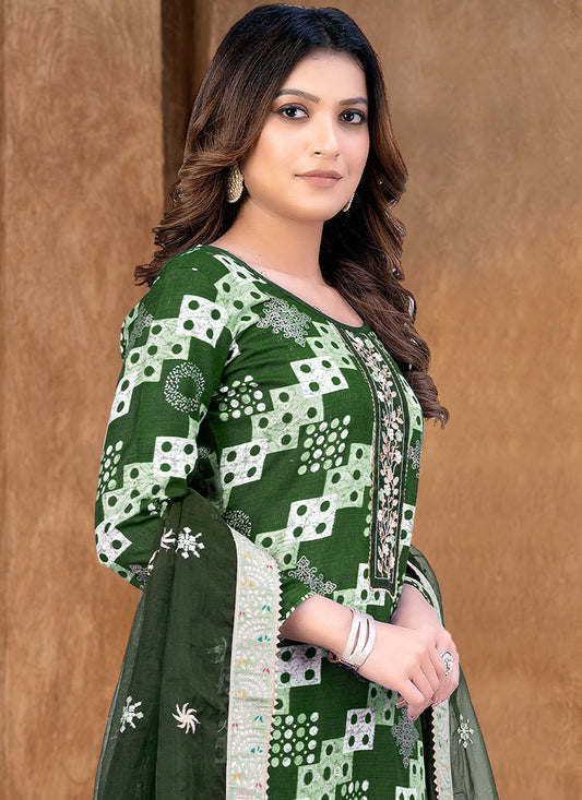 Straight Salwar Suit Cotton Green Print