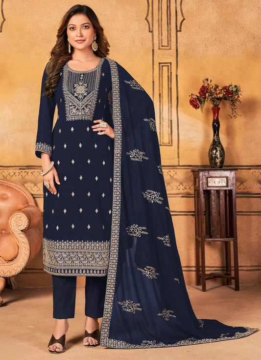 Pant Style Suit Faux Georgette Blue