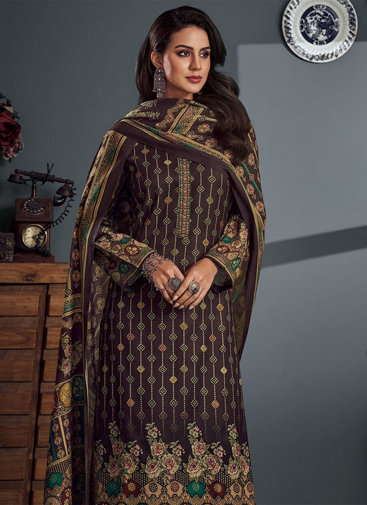 Salwar Suit Pashmina Brown Digital Print