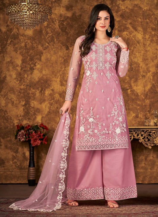 Salwar Suit Net Pink Cord Work