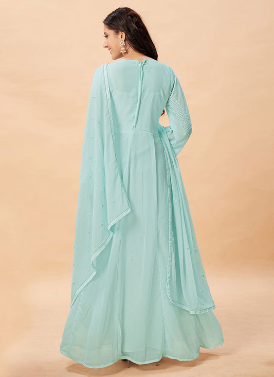 Anarkali Suit Faux Georgette Aqua Blue