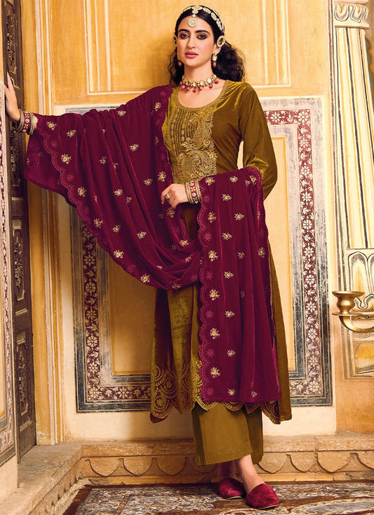 Salwar Suit Velvet Gold Embroidered Salwar