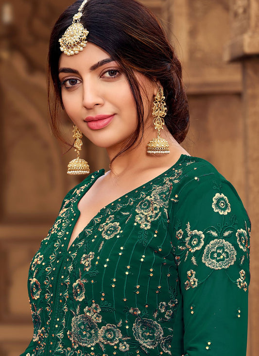 Salwar Suit Faux Georgette Green Embroidered