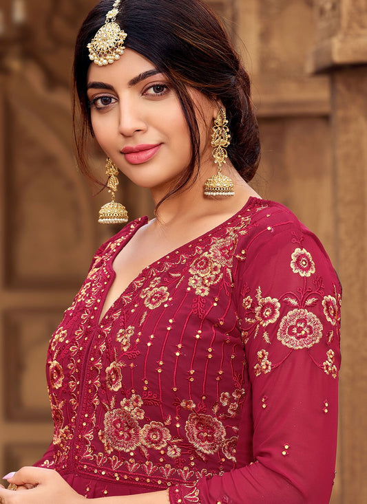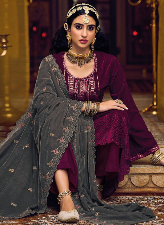 Palazzo Salwar Suit Velvet Magenta Embroidered