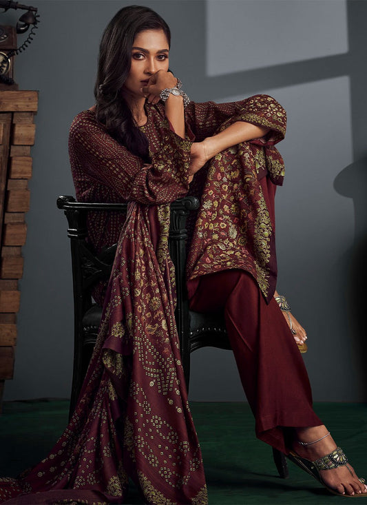 Palazzo Salwar Suit Pashmina Maroon Digital