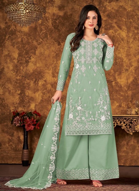 Pakistani Salwar Suit Net Sea Green