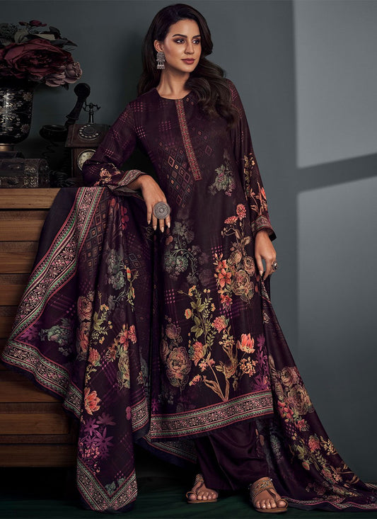 Palazzo Salwar Suit Pashmina Wine Digital