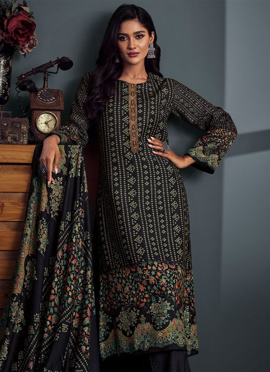 Palazzo Salwar Suit Pashmina Black Digital