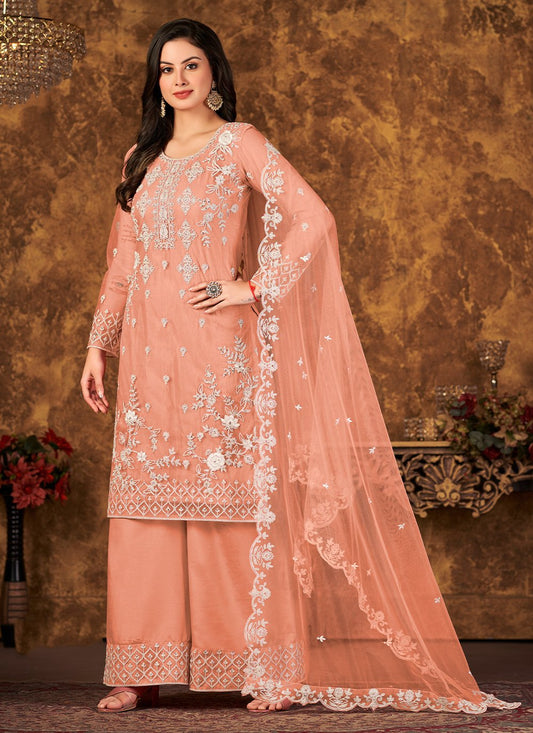 Salwar Suit Net Peach Cord Work