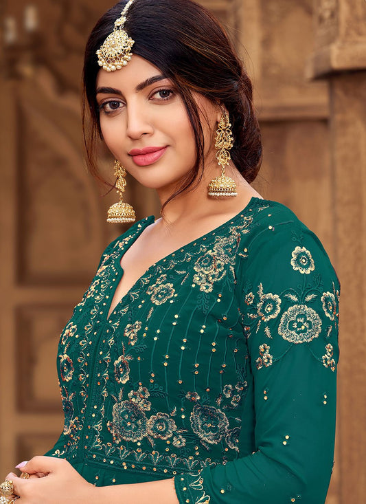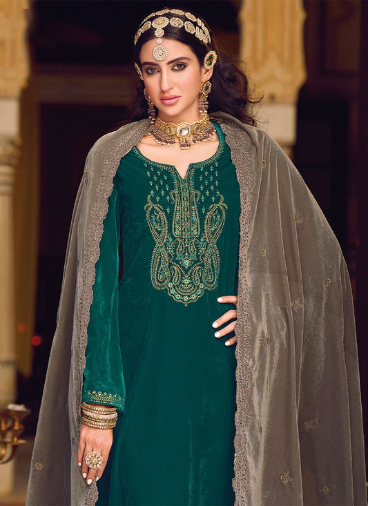 Salwar Suit Velvet Teal Embroidered Salwar