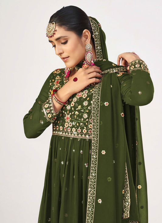 Palazzo Salwar Suit Georgette Teal Embroidered