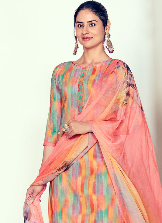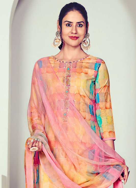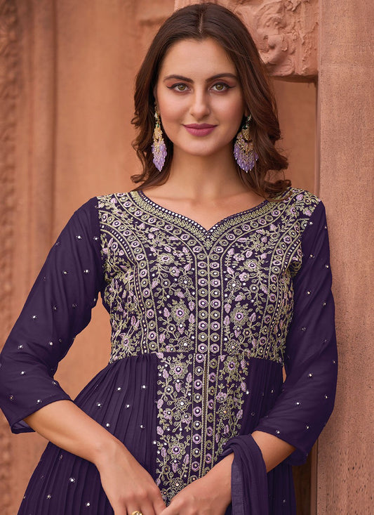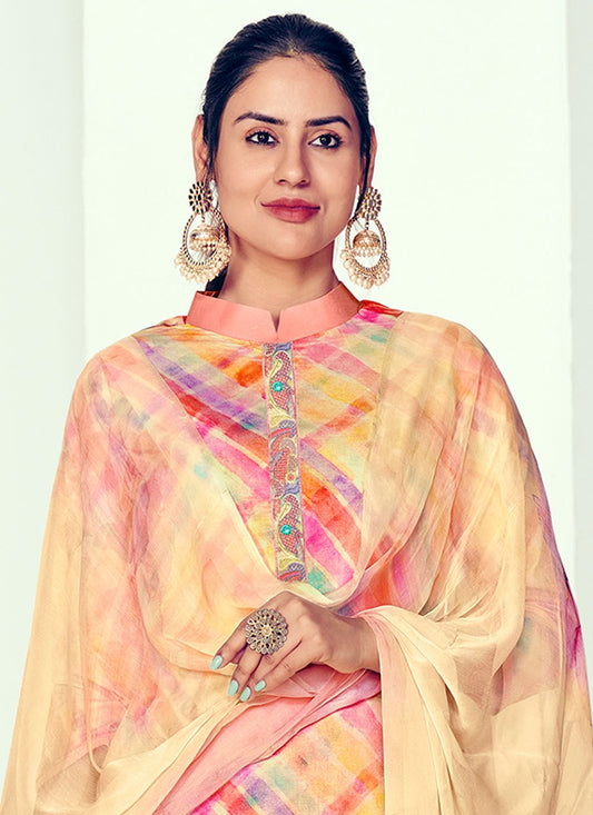 Palazzo Salwar Suit Georgette Morpeach Embroidered