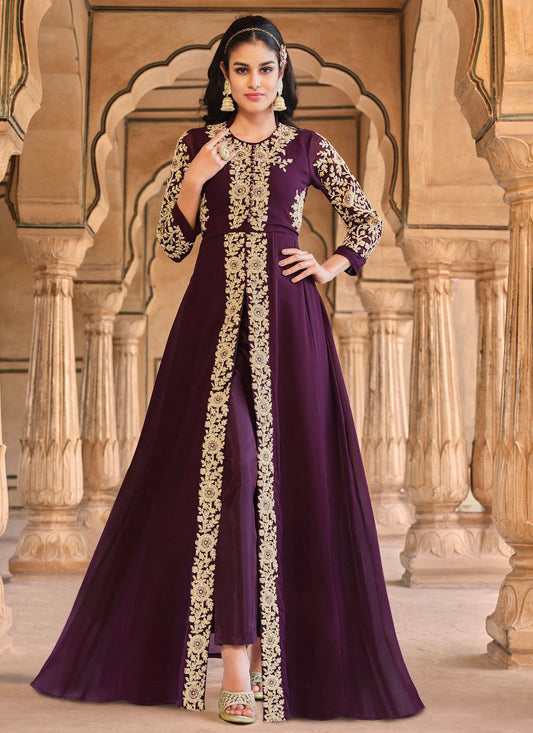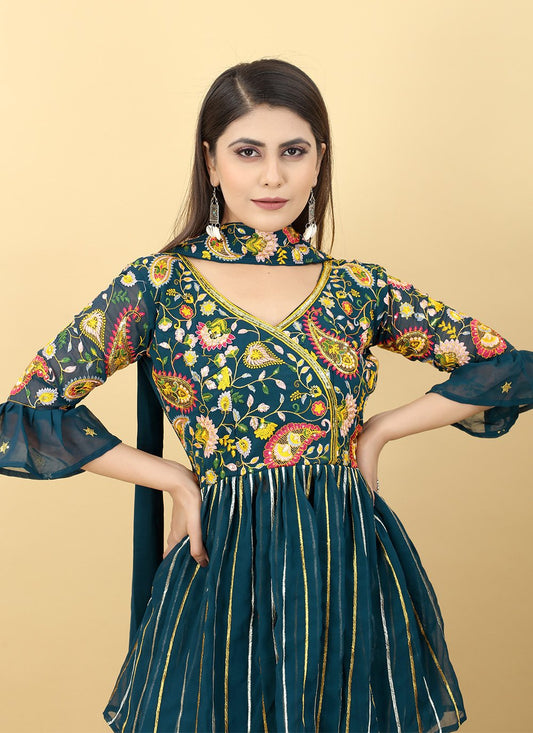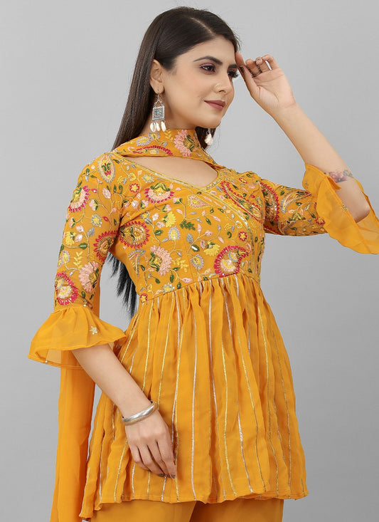 Sharara Set Georgette Morpeach Embroidered Salwar