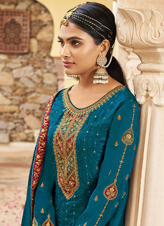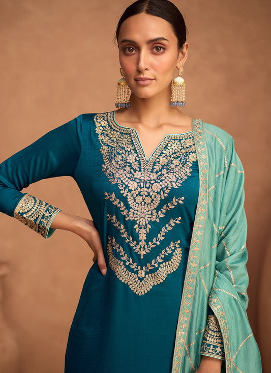 Pakistani Salwar Suit Georgette Turquoise Diamond