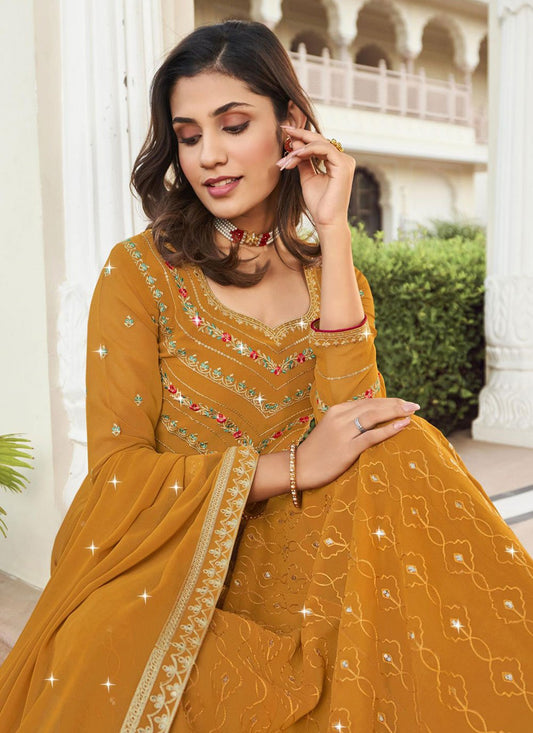 Salwar Suit Georgette Mustard Embroidered Salwar