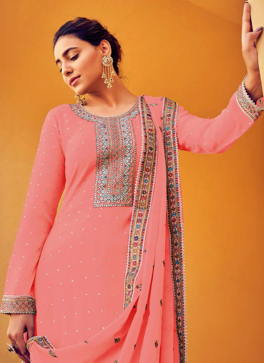 Salwar Suit Chiffon Chinon Pink Embroidered