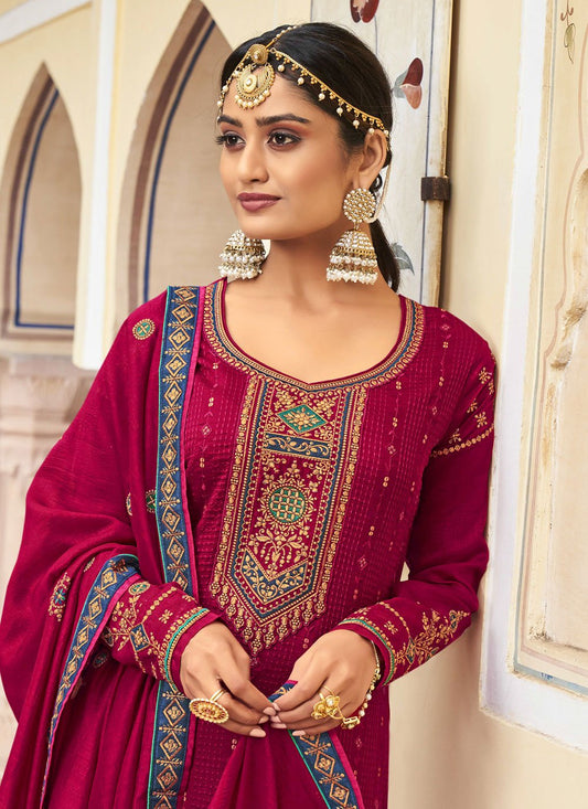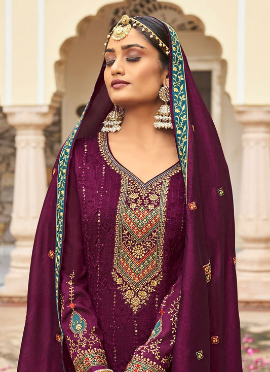 Pakistani Salwar Suit Vichitra Silk Maroon