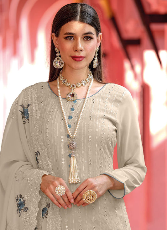 Pakistani Salwar Suit Chiffon Chinon Cream