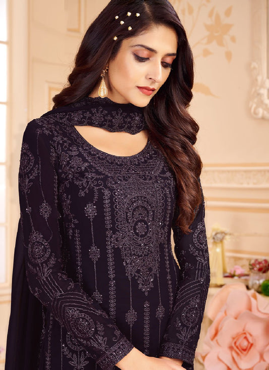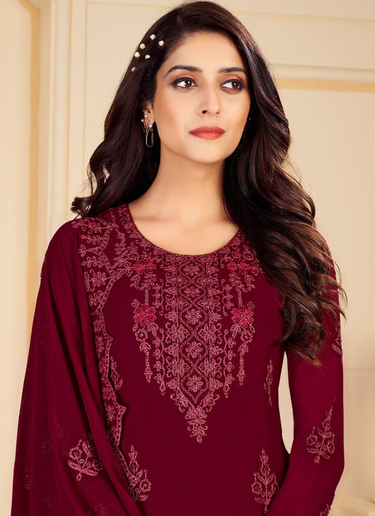 Salwar Suit Velvet Maroon Embroidered Salwar