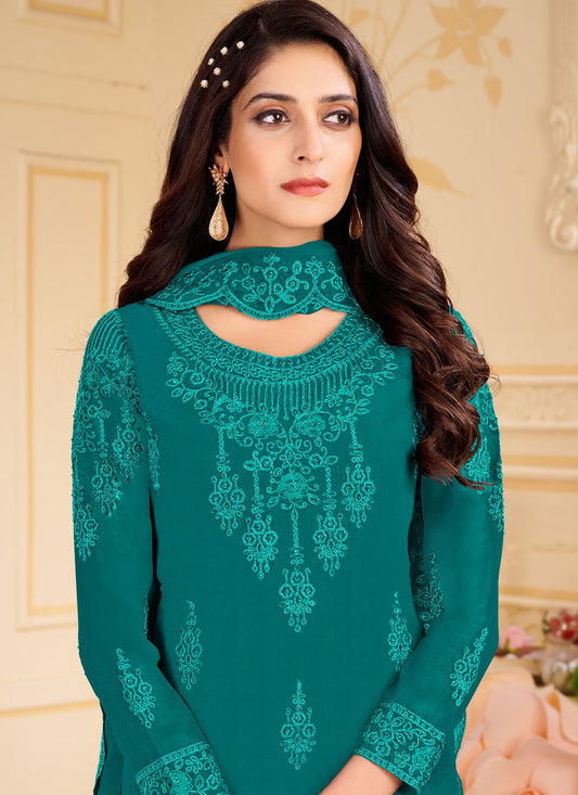 Pakistani Salwar Suit Faux Georgette Turquoise