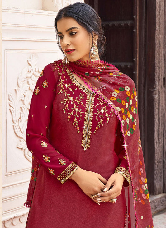 Pakistani Salwar Suit Georgette Maroon Embroidered