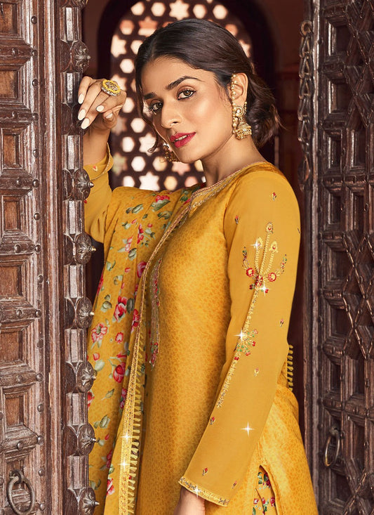 Salwar Suit Faux Crepe Mustard Diamond