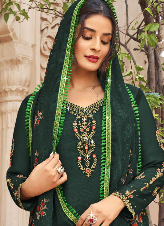 Pakistani Salwar Suit Georgette Green Embroidered