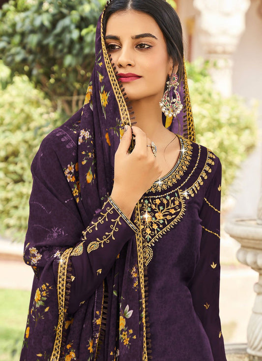 Punjabi Salwar Suit Faux Crepe Purple