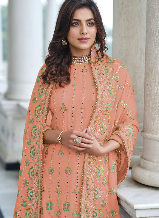 Salwar Suit Georgette Yellow Embroidered Salwar