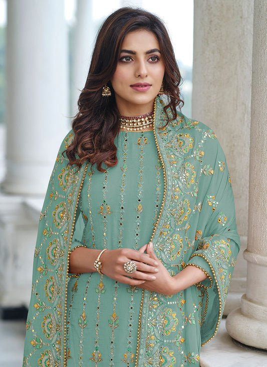 Salwar Suit Georgette Turquoise Sequins Salwar