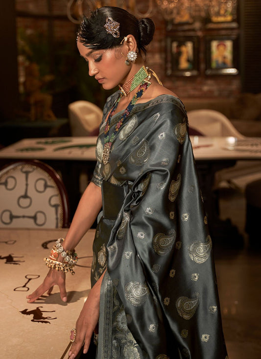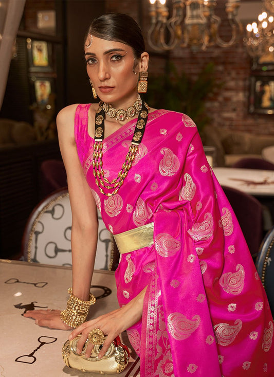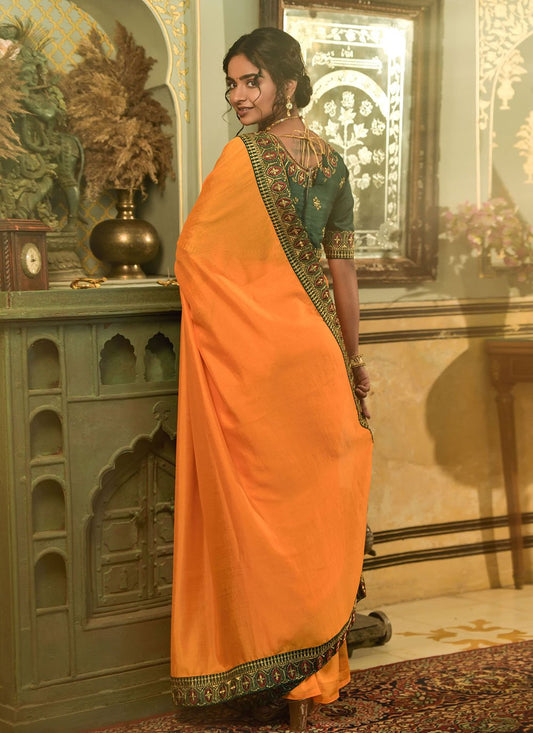 Contemporary Vichitra Silk Wine Embroidered Saree